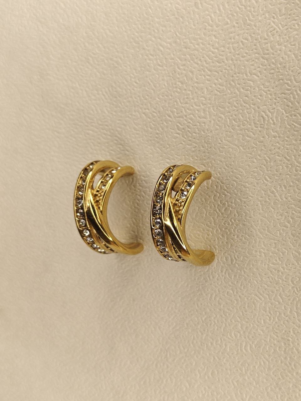 Gold-Tone Crystal Encrusted Crossover Earrings